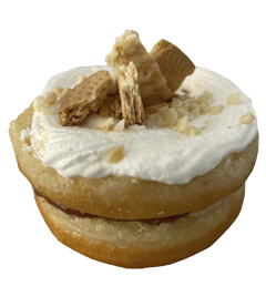Glass de plátano, choco blanco, relleno de caramelo y almendra